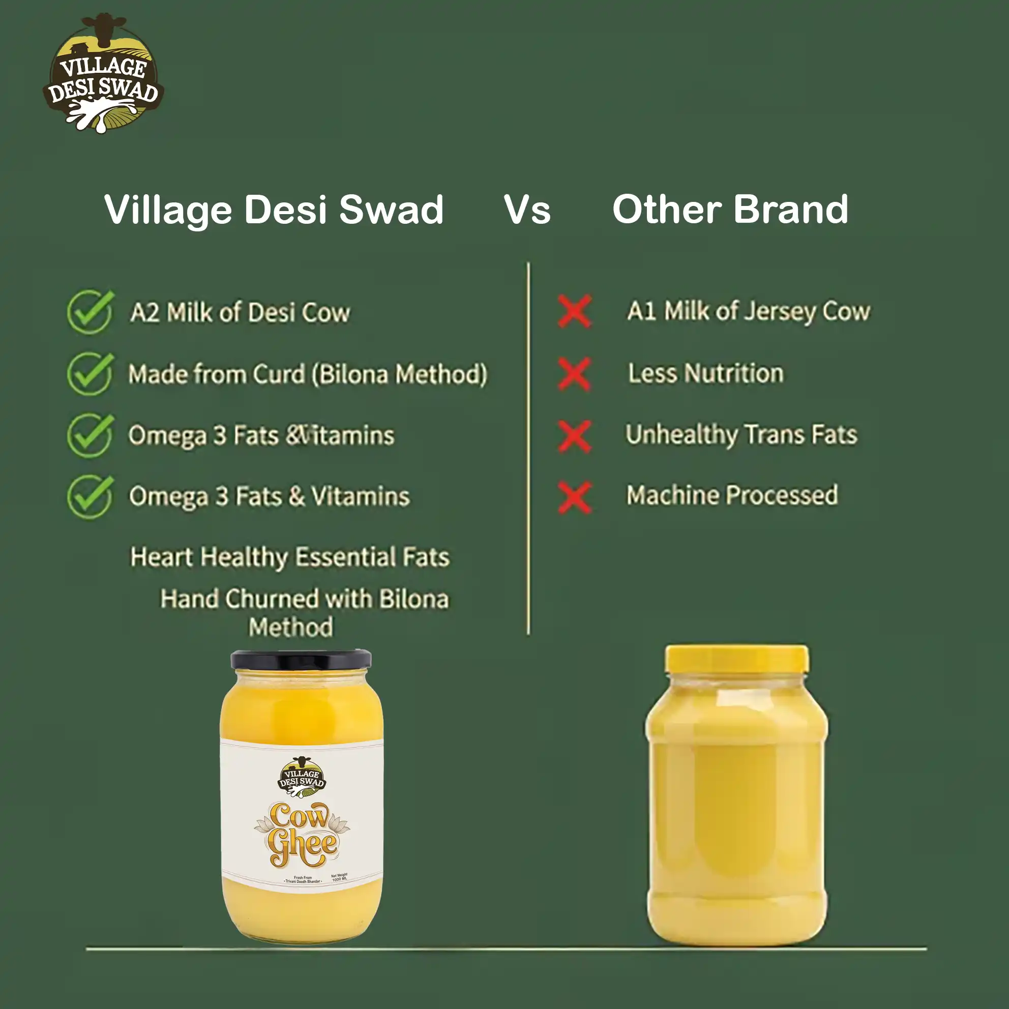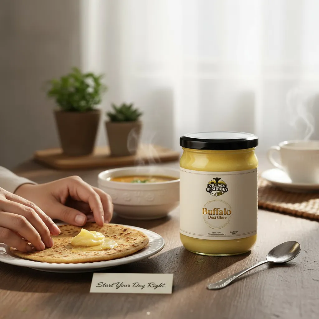 Crafted from Desi cows Milk using the ancient Bilona method — hand-churned, nutrient-rich, and 100% natural.